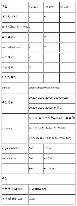 측정 범위 : 200, 2000, 20000, 200000 Lux